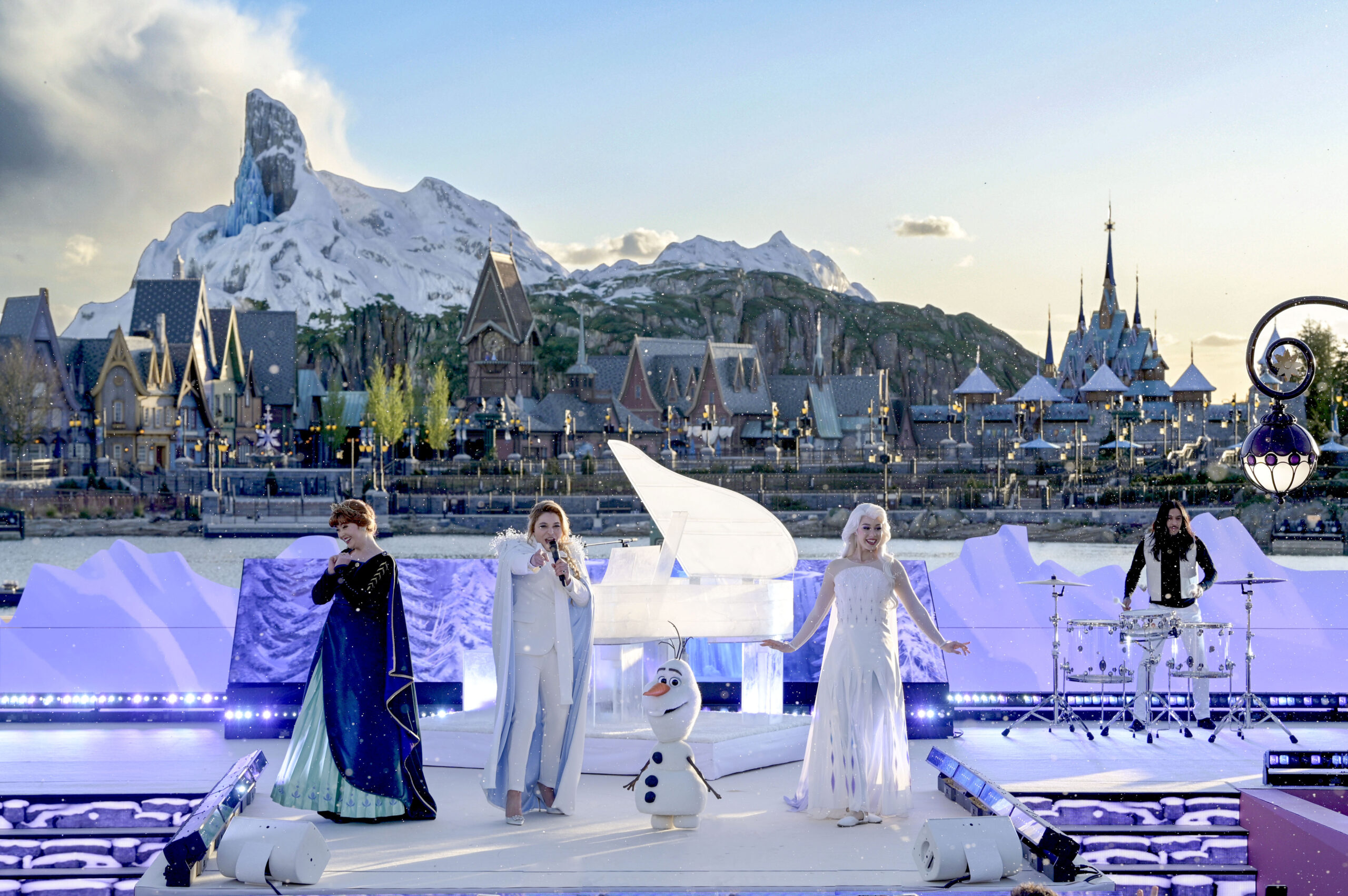 Na een feestelijk moment met Josh D’Amaro, Natacha Rafalski en Thomas Mazloum, ging de ceremonie verder met Rapunzel, Flynn en hun vrienden. De groep bracht een ontroerend muziekstuk ten gehore als eerbetoon aan de nieuwe attractie Raiponce: Tangled Spin op Adventure Way. Vervolgens zong de Franse zangeres Santa “Into the Unknown”, het iconische nummer uit Frozen 2.